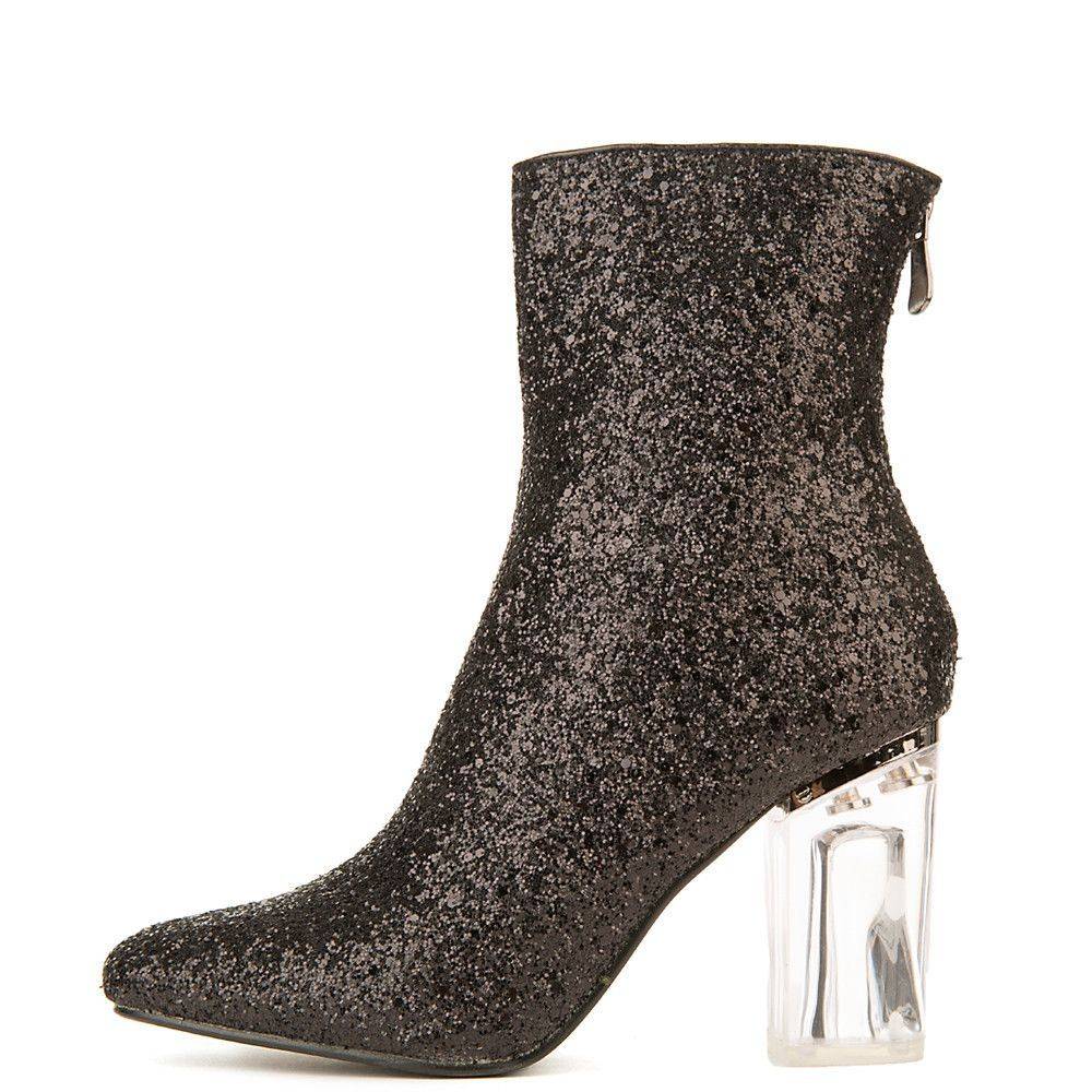 Для работы подойдет образ включающий узкую синюю юбку, белую шифоновую блузку, объемное серое пальто и белые полусапожки с необычным каблуком, шнуровкой и интересной фактурой. Черные полусапожки, инкрустированные блестками, черные джинсы, оверсайз свитер и объемный бомбер — прекрасный вариант для повседневного образа.