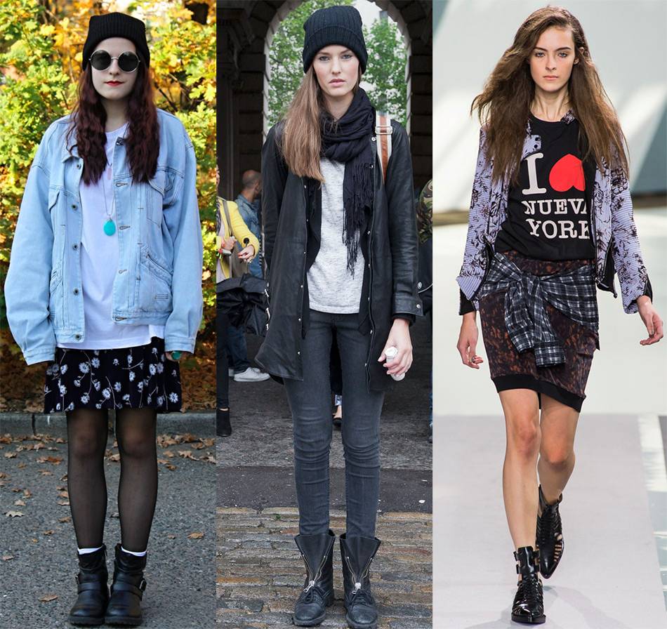 Грубые джинсовые куртки дополняются легкими трикотажными юбками ультра-длины, а зима характеризуется полушубками из искусственного меха ярких оттенков и длинными шарфами, небрежно накинутыми на плечи.