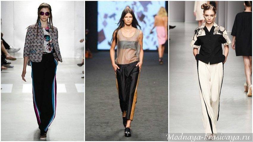 Если вы собираетесь включить лампасы в свой гардероб, будьте крайне внимательны при выборе деталей образа. Не стоит просто брать старые спортивные штаны, модный образ у вас вряд ли получится. Итак, какие модели особенно актуальны сейчас.
