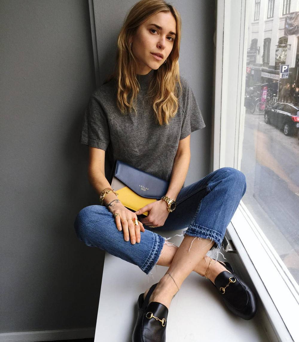 - С классическими джинсами и одеждой из денима. Здесь намного проще рассказать с чем джинсы не сочетаются. Это классический образ городской девушки. Допускается подворачивание штанин;
