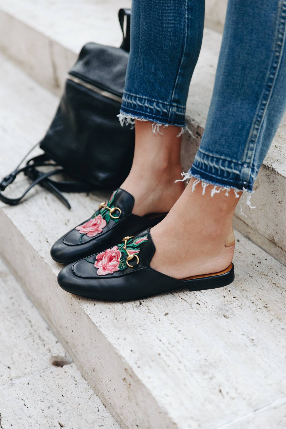 Они прекрасно сочетаются с узкими штанами и джинсами. При чем, последние можно слегка подвернуть, чтобы продемонстрировать окружающим тонкое изящество лодыжки.