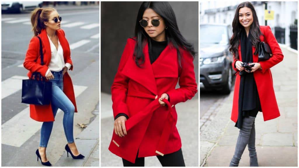 Укороченное красное пальто будет хорошо смотреться с черными брюками и водолазкой, а также с джинсами и белым свитшотом. Более длинные модели можно носить с юбкой карандаш и блузой. Старайтесь, чтоб подол юбки не выходил за длину пальто.