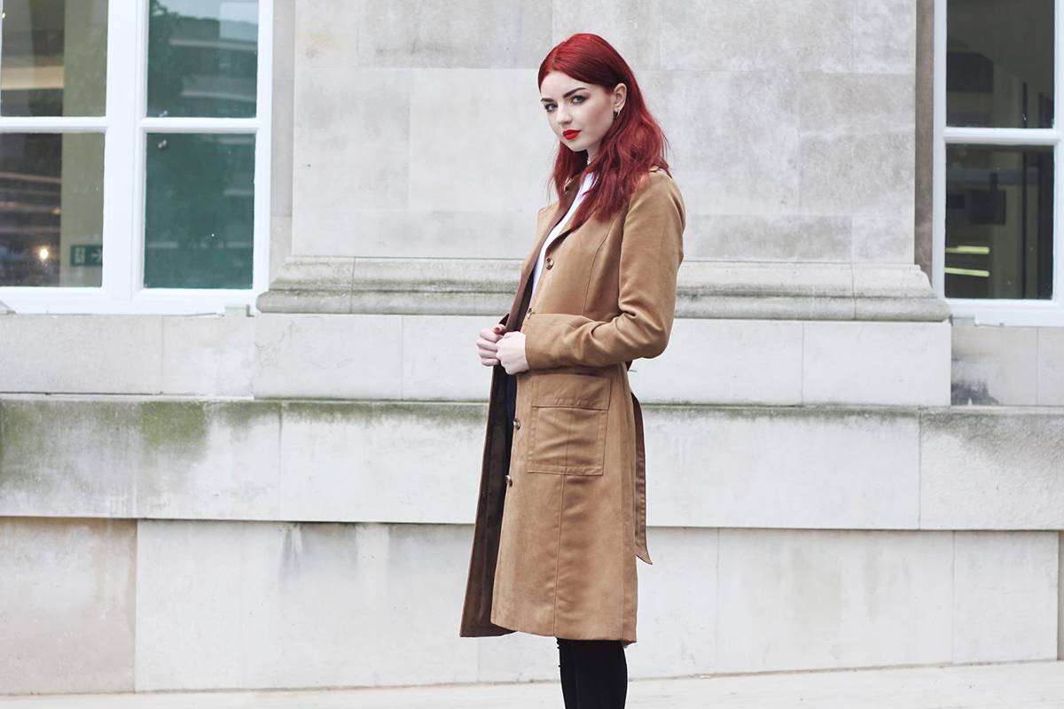 Оригинальное замшевое пальто больше всего подходит для начала осени, солнечных и сухих дней. Требующую специального ухода замшу не стоит носить в дождливые дни, так как грязь, попавшую на нее, будет довольно сложно очистить. Из-за особенностей материала фасоны замшевых пальто довольно простые и приближены к классическим. С ними хорошо смотрятся закрытые темно-коричневые туфли на невысоком каблуке и бежевые сумки.