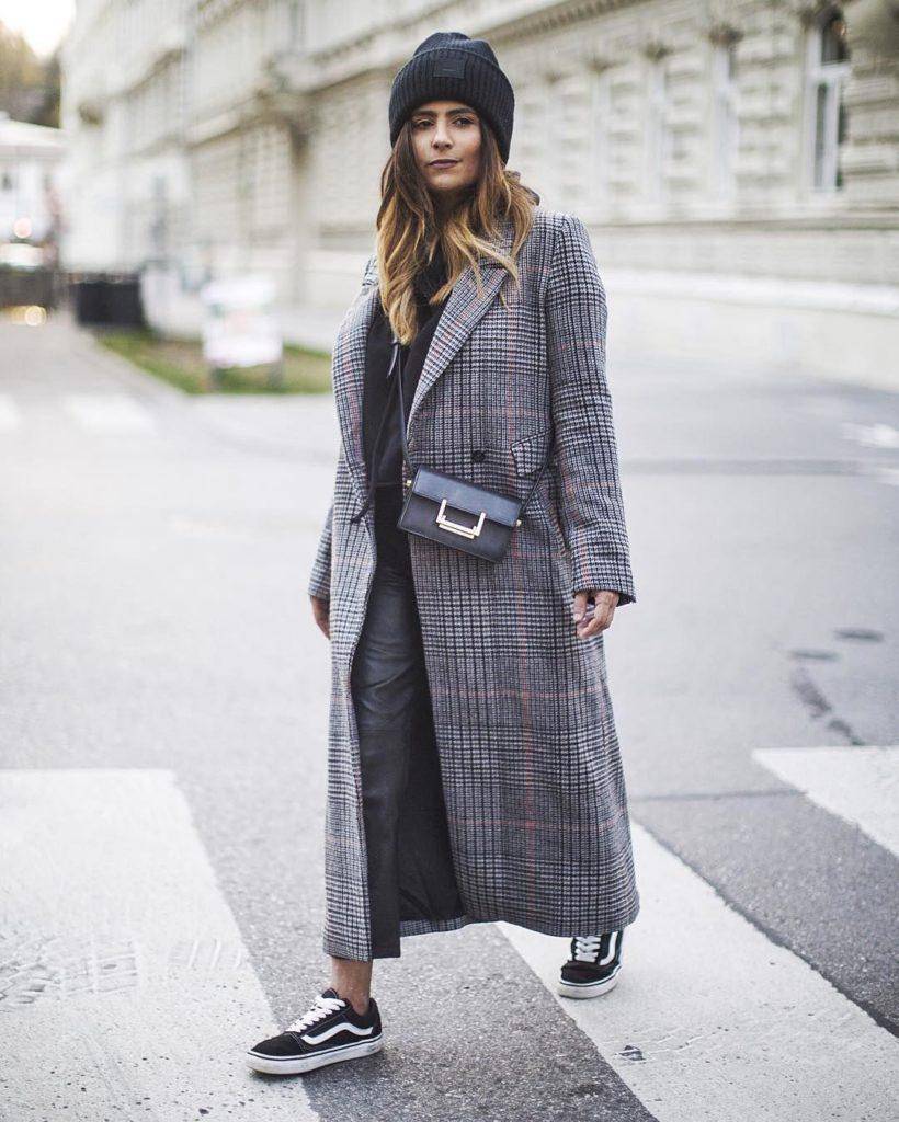 Если вы так же, как и Эвелина Хромченко, приветствуете сочетание классического пальто с кроссовками, кедами и ботинками, делайте ставку на прямой чуть свободный крой. Такой фасон отличается тем, что отлично комбинируется с любой обувью. В спортивном стиле удачно смотрится расстегнутая верхняя одежда.