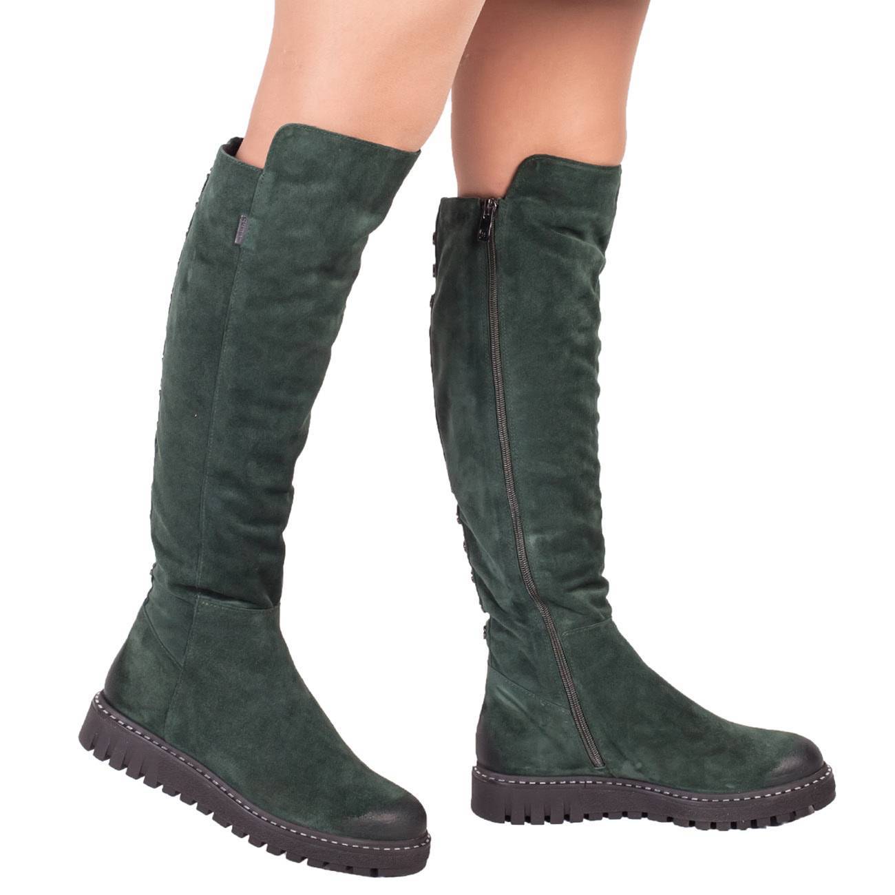 - Удобство и комфорт. Ботфорты из замши без каблука безопасны при передвижении во время гололеда. Ноги не устают так, как при ношении обуви на шпильке.