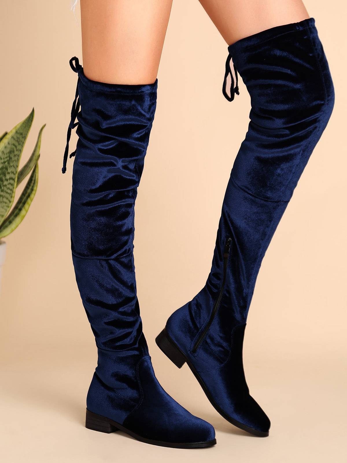 С замшевыми ботфортами на шпильке не носят одежду с большим вырезом или открытой спиной.