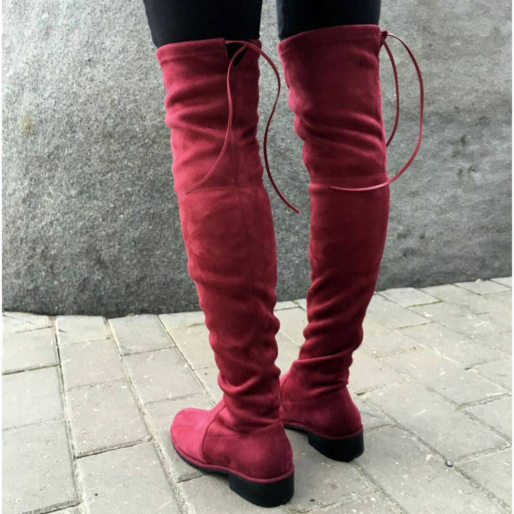 Самые удачные образы с замшевыми сапогами цвета бордо