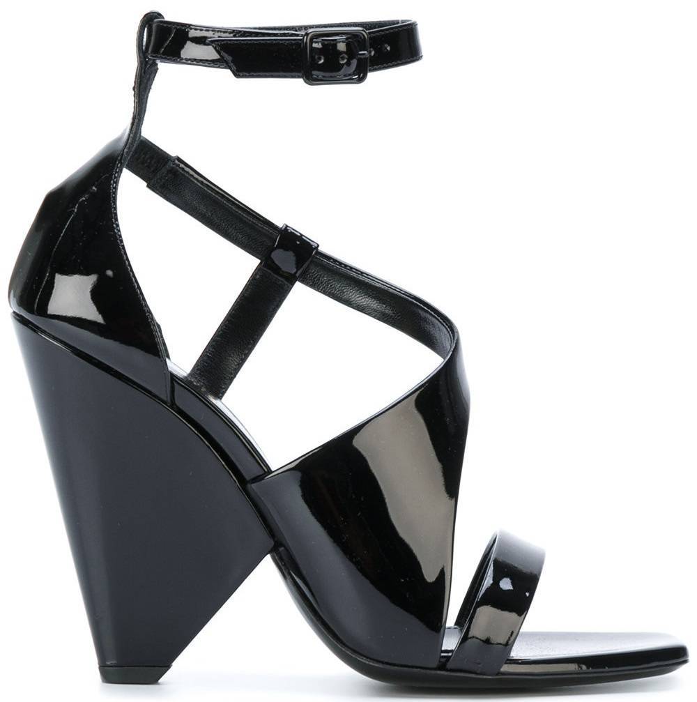 - Эффектно выглядеть на торжественном мероприятии помогут босоножки из лаковой кожи с ремешком вокруг щиколотки и округлым носком, придающим женственность всему образу.